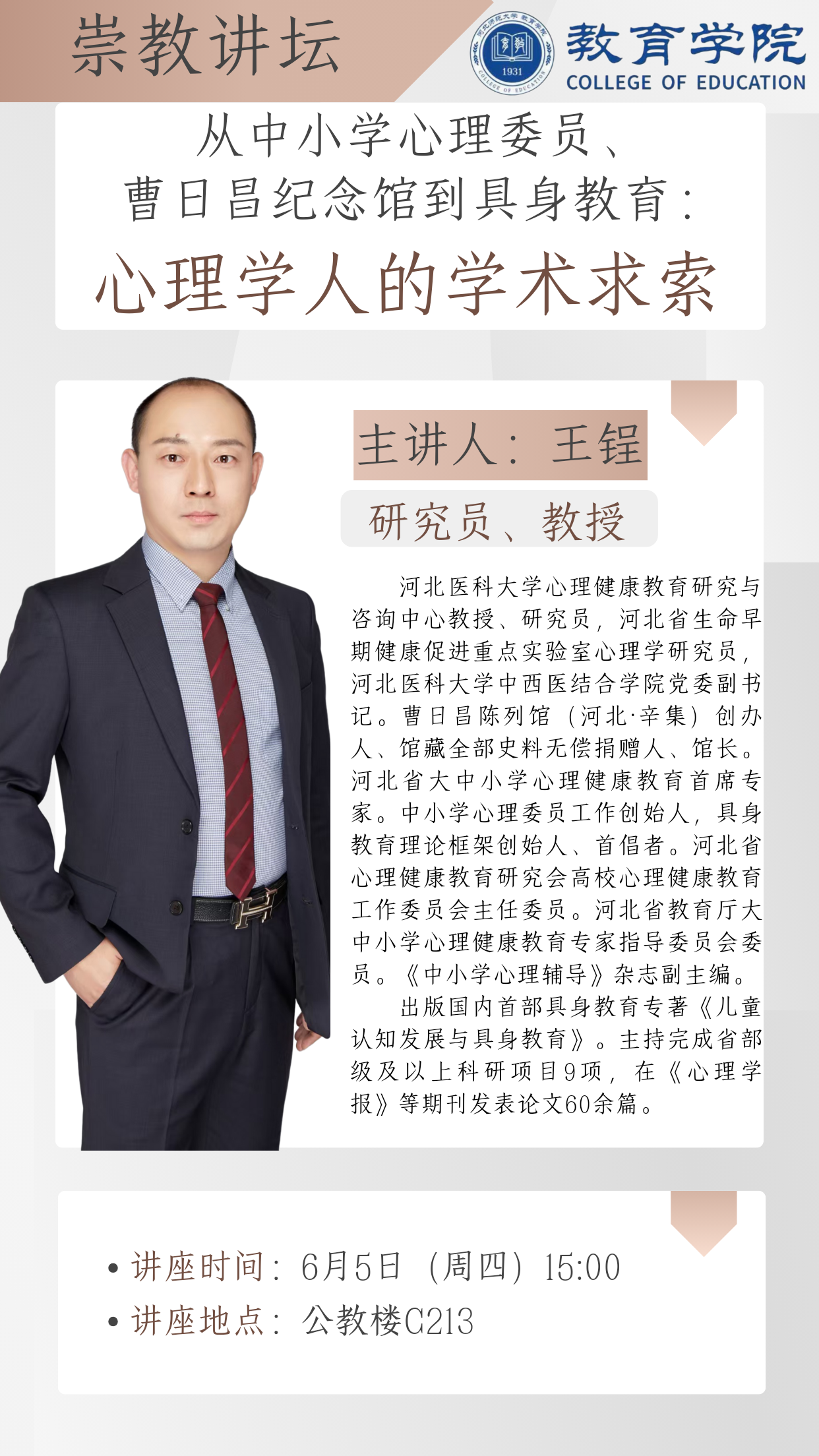 崇教讲坛:从中小学心理委员、曹日昌纪念馆到具身教育:心理学人的学术求索